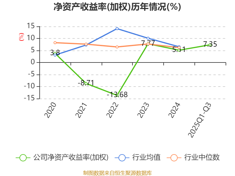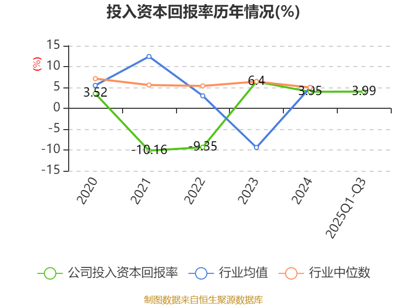 盈利能力方面, 2025年前三季度公司加权平均净资产收益率为7.35%,同比上升0.06个百分点。公司2025年前三季度投入资本回报率为3.99%,较上年同期下降1.19个百分点。