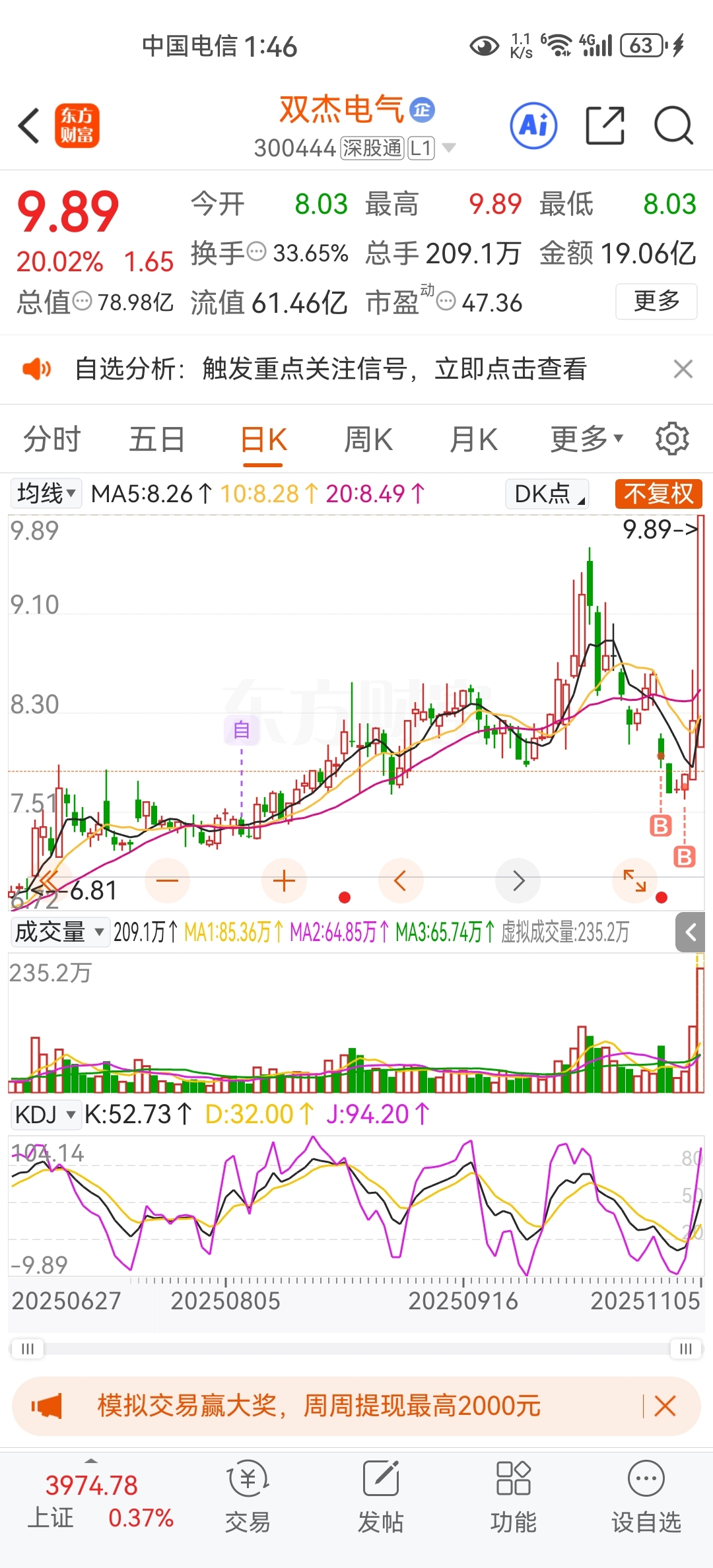 人生第一次得到过一天二十个点的涨幅!头一次!