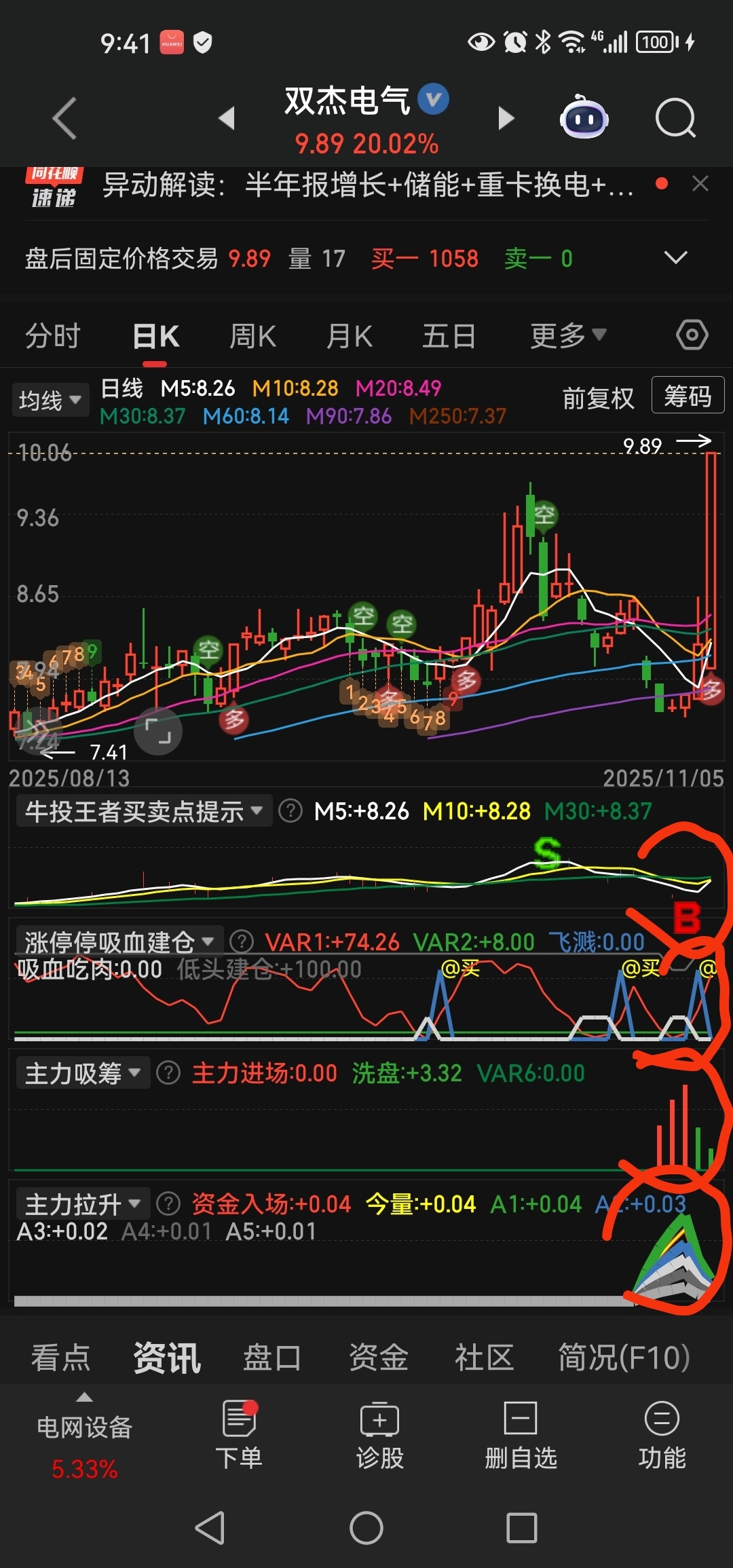 $双杰电气(SZ300444)$ 前几天5块多推荐海峡几天推荐这个股上图4种软件同时买点,翻倍稳稳的