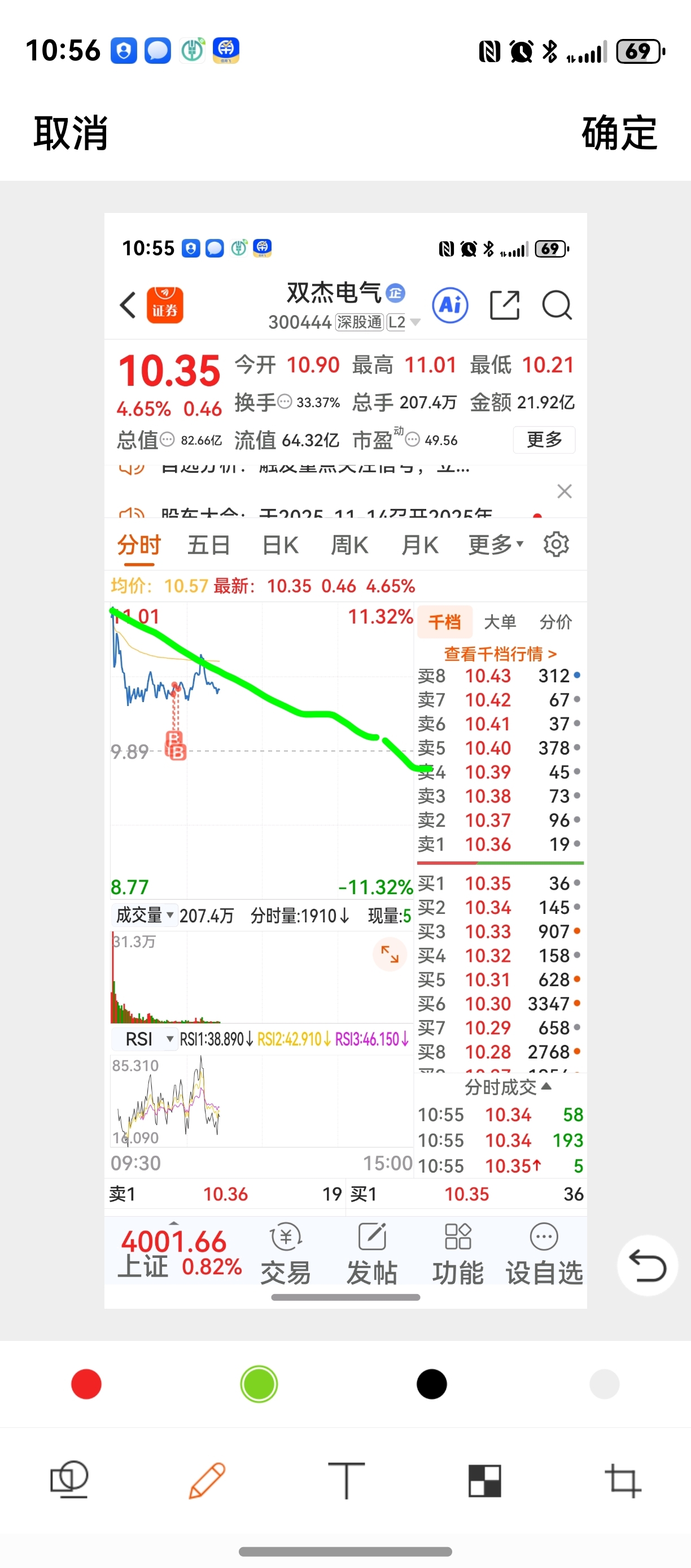 $双杰电气(SZ300444)$ 兄弟们这样子走下去就成钓鱼线了,打野有可能会失败,明天再战!