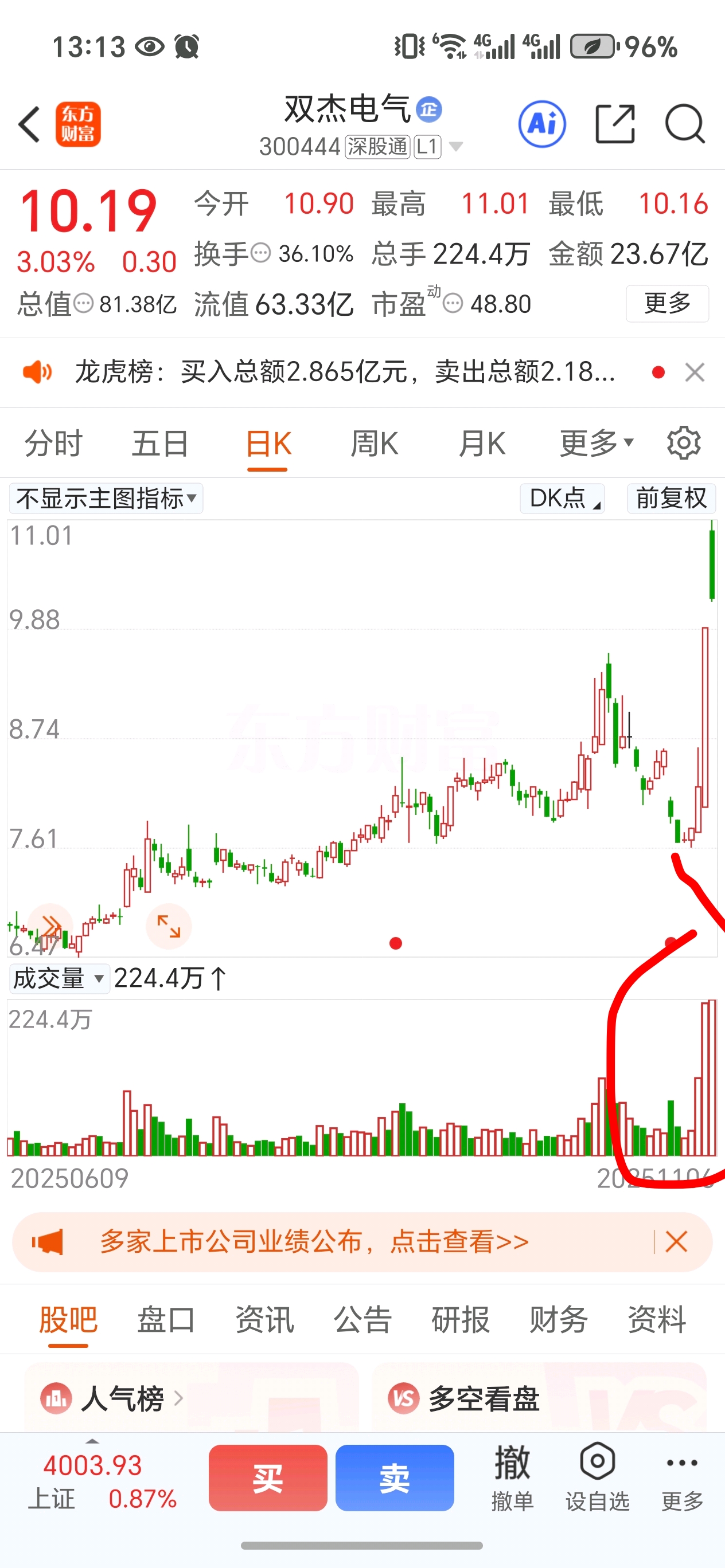 $双杰电气(SZ300444)$ 巨量阴线出货?