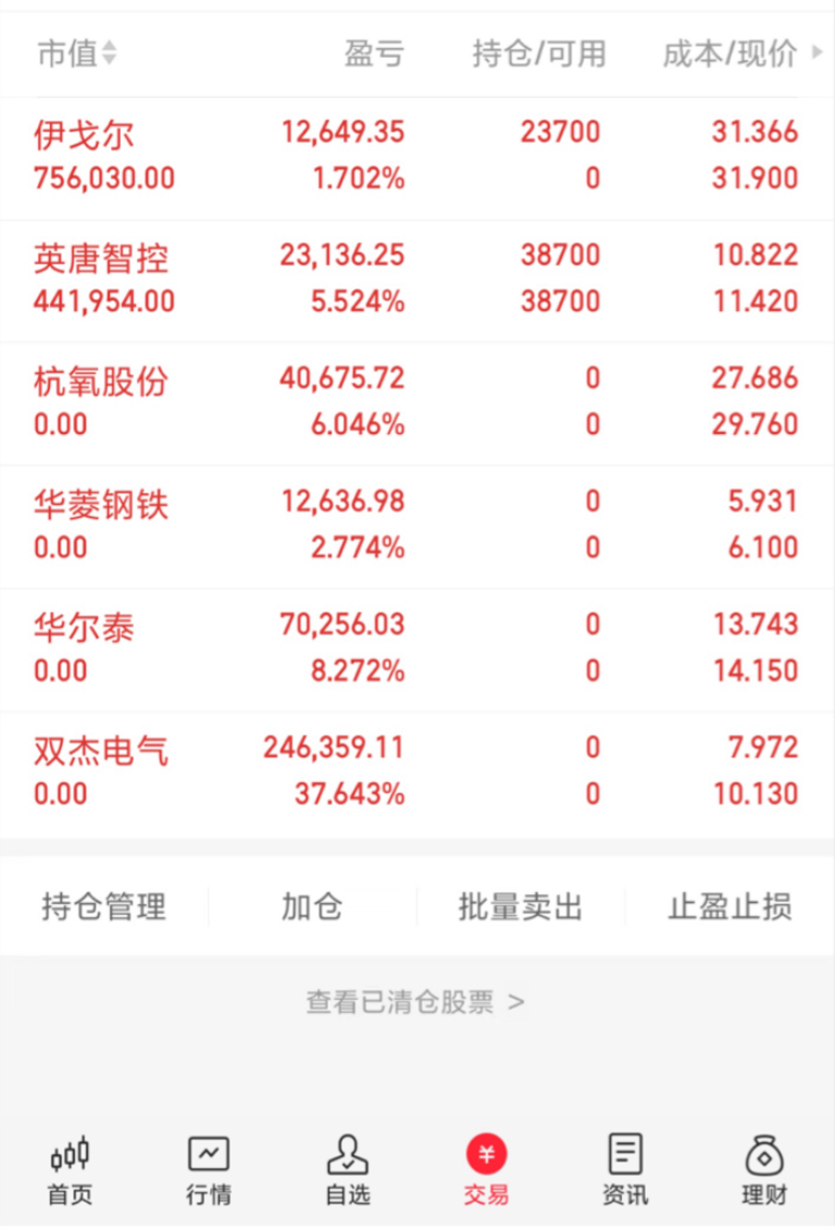 $双杰电气(SZ300444)$ 、华菱钢铁、杭氧股份、$华尔泰(SZ001217)$ 以上已卖出