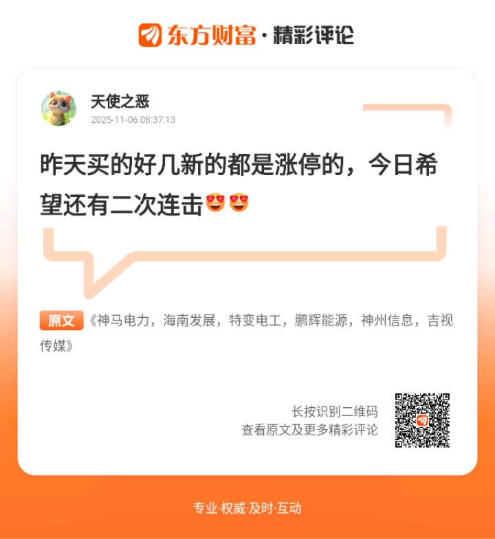 神马电力,微软和 Open AI 两大 CEO 的采访时透露,现在不是算力不够,是电不够用!都堆在仓库里歇着,就等电力供应跟上。神马,一方面它是马字辈前排,A 股年底就爱炒这类有话题度的标的;另一方面它是美国绝缘子核心供应商,欧洲、巴西市场都拿了大份额,还参与了英国核电工程,正好踩中缺电、电网升级的风口。开盘后看有没有机会低吸 —— 毕竟之前追高吃过大亏,上次炒圣龙股份时,尾盘追高直接被套,这次可不敢冲动。