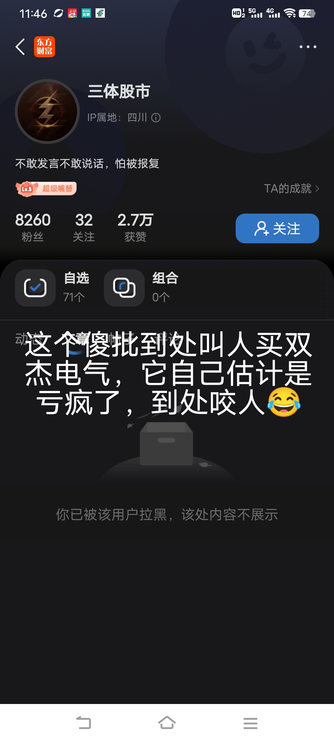 $双杰电气(SZ300444)$ 这个叫三体股市的二球,亏疯了到处咬人