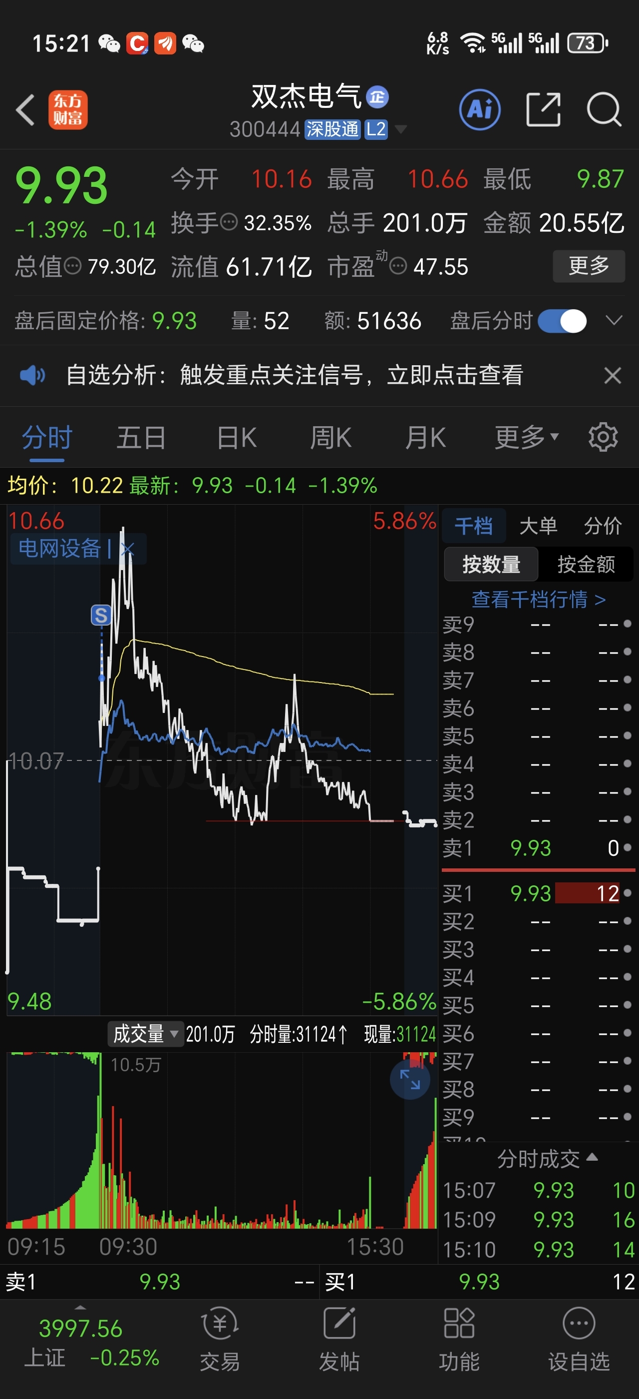 $双杰电气(SZ300444)$ 开盘撤单来不及
