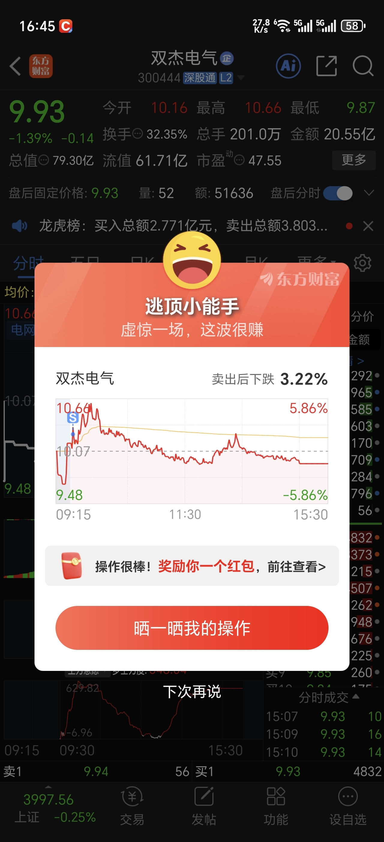 $双杰电气(SZ300444)$ 卖飞了