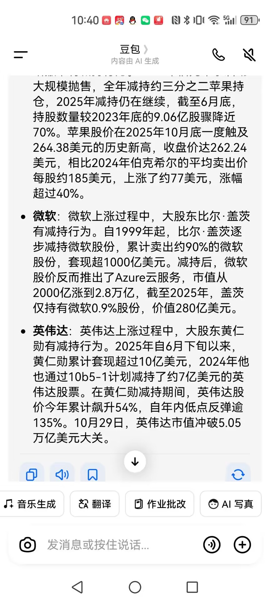 看看苹果,微软,英伟达的大股东有没有减持过吧,再减持后又涨了多少倍吧,井底得青蛙们!1