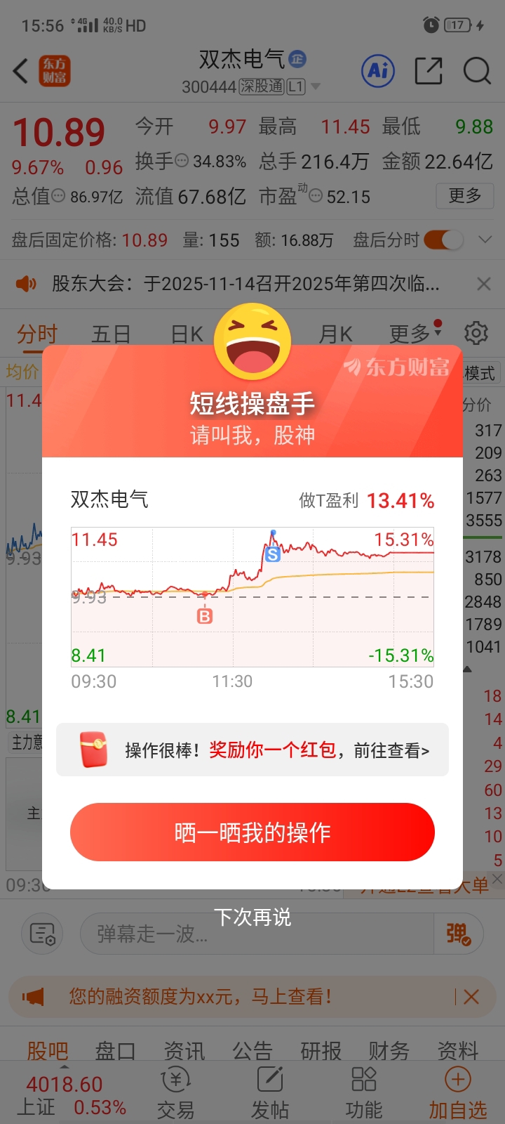 $双杰电气(SZ300444)$ 从4方达出来,也还不错,希望4方达,别涨太快,