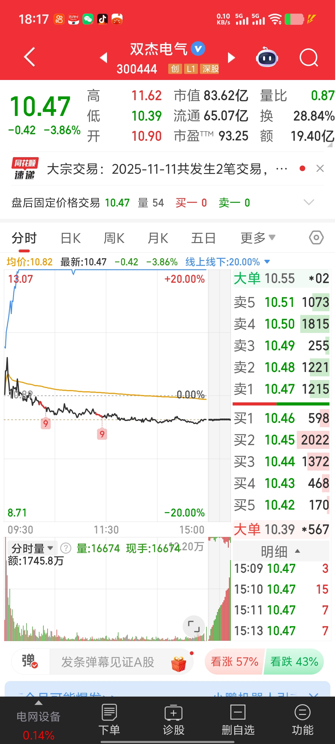 $双杰电气(SZ300444)$ 打开软件吓一跳,以为涨停了呢,这是什么情况?预演一下明天的走势吗?