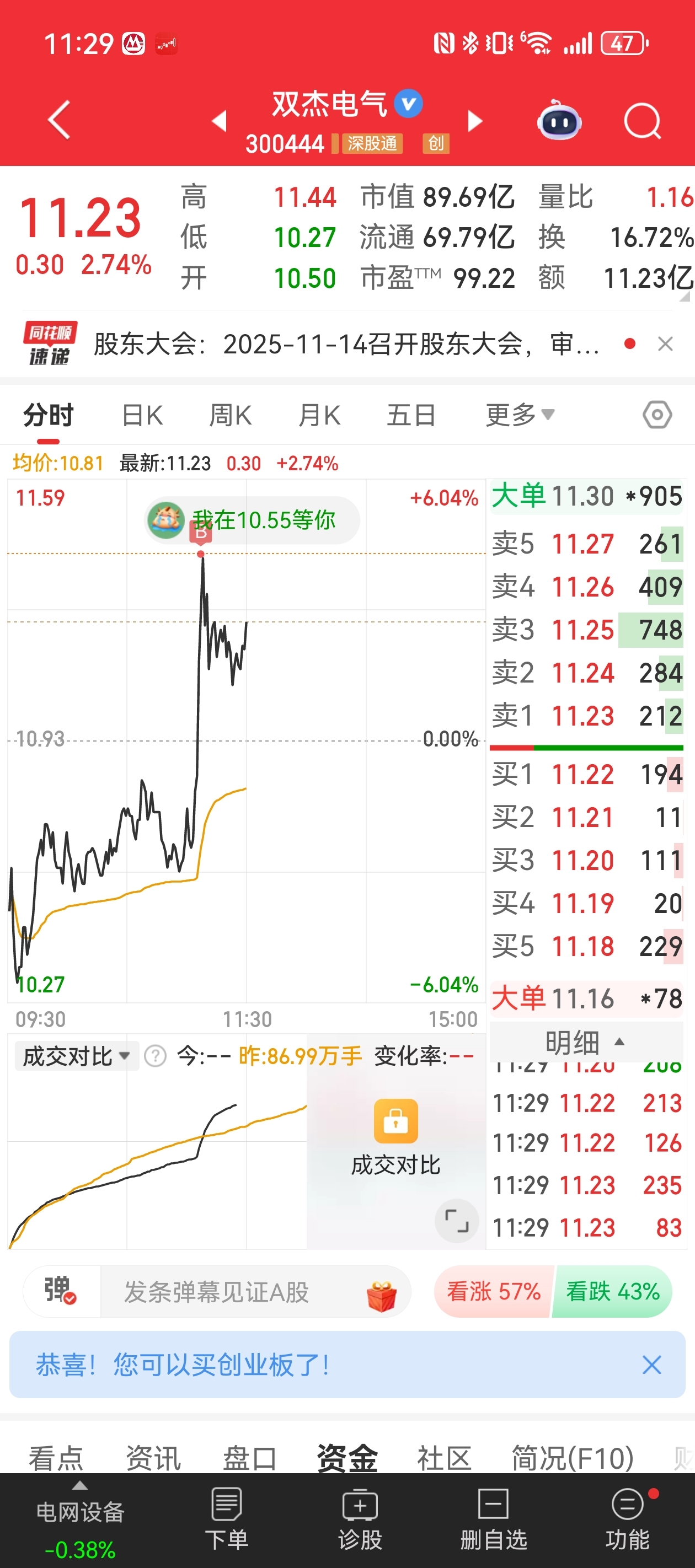 $双杰电气(SZ300444)$ 挂山顶了哎