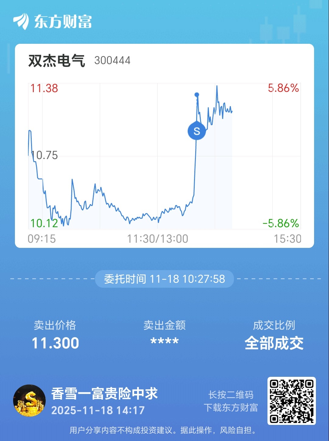 11.3挣5个点跑了!留下的发财!感谢主力不杀之恩!空仓休息了!这13大环境,不