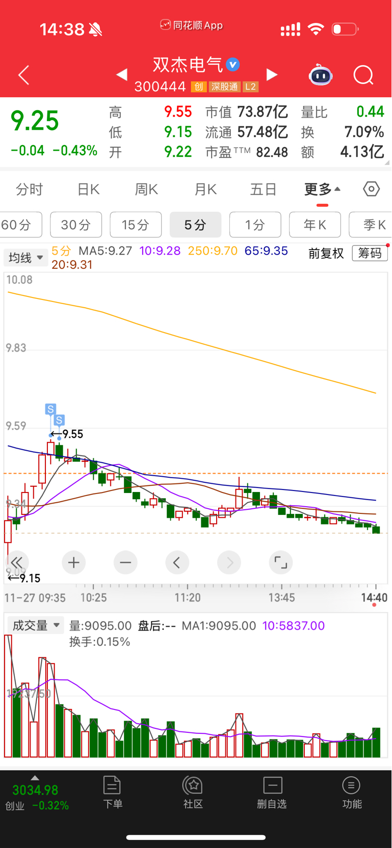 $双杰电气(SZ300444)$ 走了,这票真坑,止不住跌