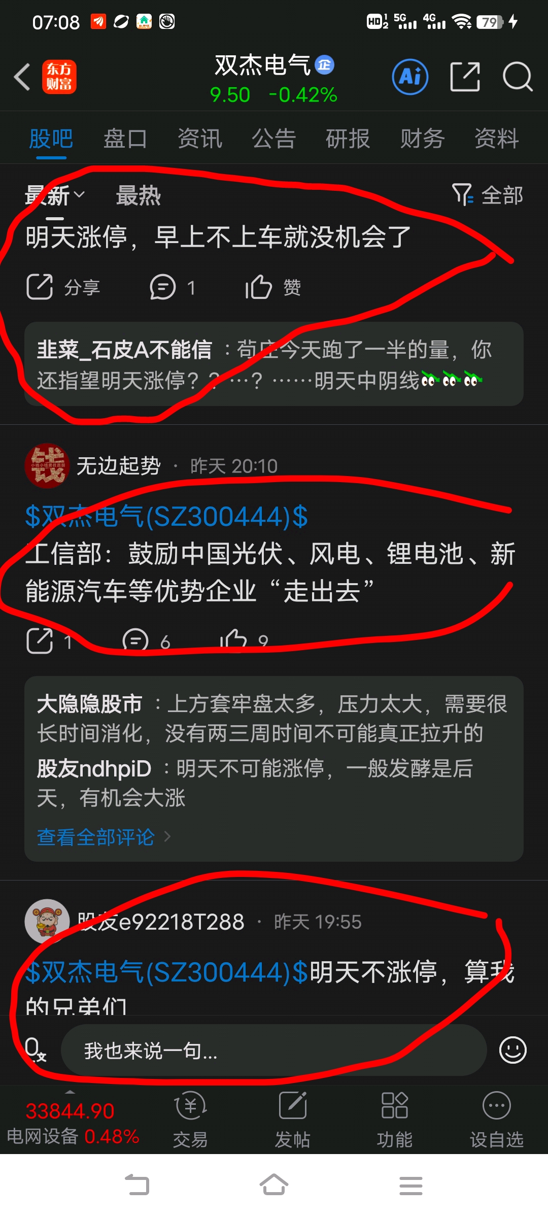 $双杰电气(SZ300444)$ 一大早打开就看到这种没有任何依据的,不知道这些人都亏成啥样了,脑子不正常了?没有任何理性分析,也没有内容依据,一上来就涨停就翻倍的,真晦气。