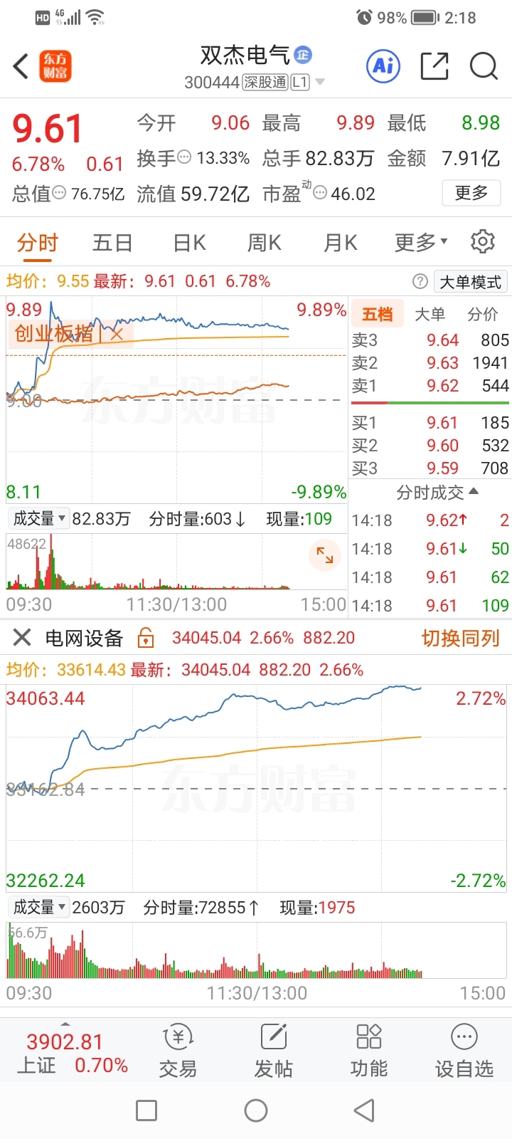 $双杰电气(SZ300444)$ 离均线太近了,跑输了板块
