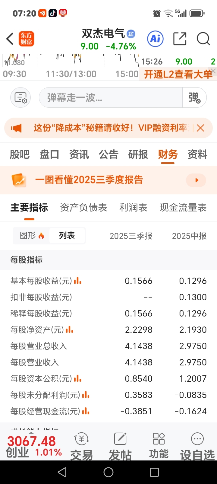 $双杰电气(SZ300444)$ 不比不知道,一比吓一跳。该股和巨轮智能都是机器人概念股,该股每股收益0.15元多#股市怎么看# #周度策略# 而巨轮智能业绩亏损4分多钱,其他数据更槽糕,每股净资产和未分利润都不足1元,比双杰电器对应的数据查的很远,但是,昨天两股的走势截然相反,盈利的双杰电器大跌,而亏损的巨轮智能涨停板,这合理吗?这样的操作逻辑是什么?