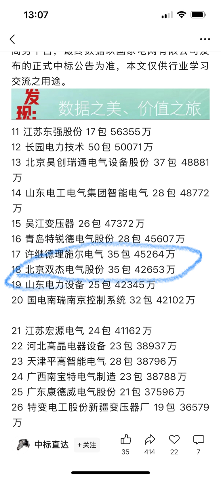 $双杰电气(SZ300444)$ 用数据说话,400多家企业,全年设备类中标排名18,已经很靠前了,加油冲