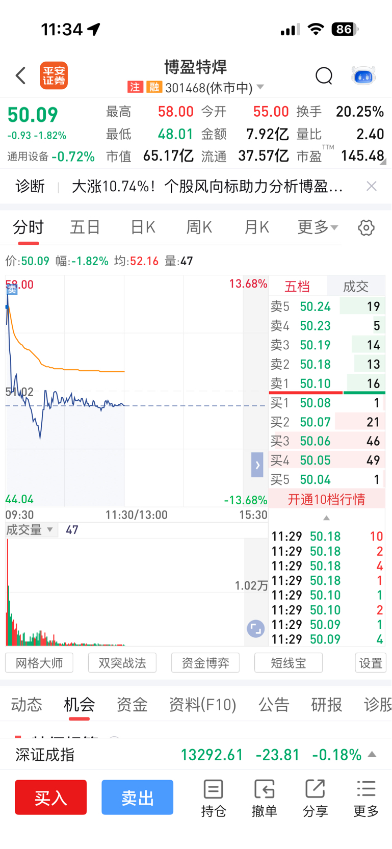 早上那种走势以为你今天要上攻,真是个废材,下午反弹走人了,幸亏今天在博盈特焊里面