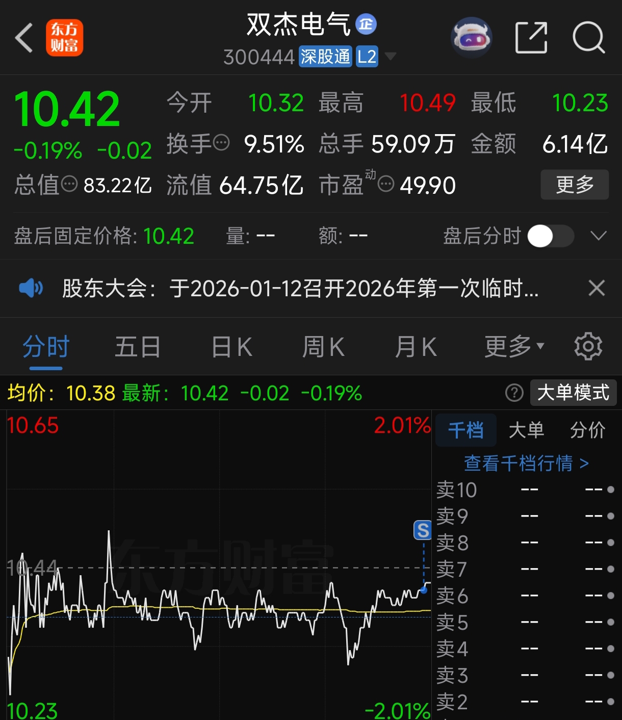 $双杰电气(SZ300444)$ 赚几万就好。改天出量再来