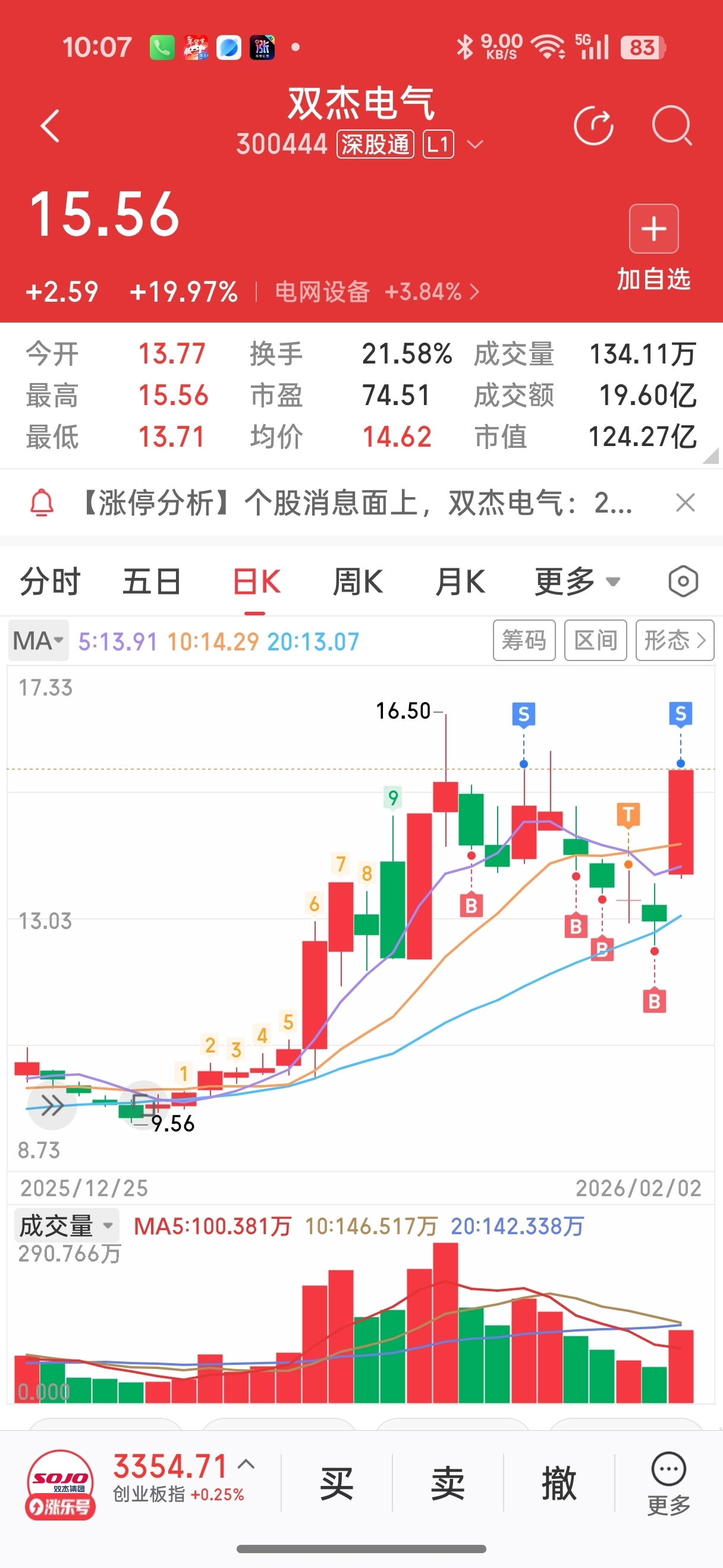 $双杰电气(SZ300444)$ 越跌越买,