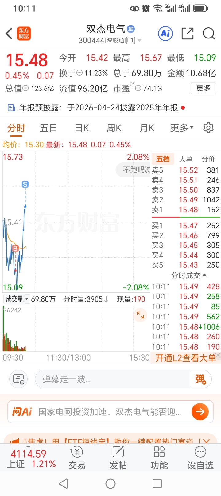 $双杰电气(SZ300444)$ 已经卖了,可以拉了