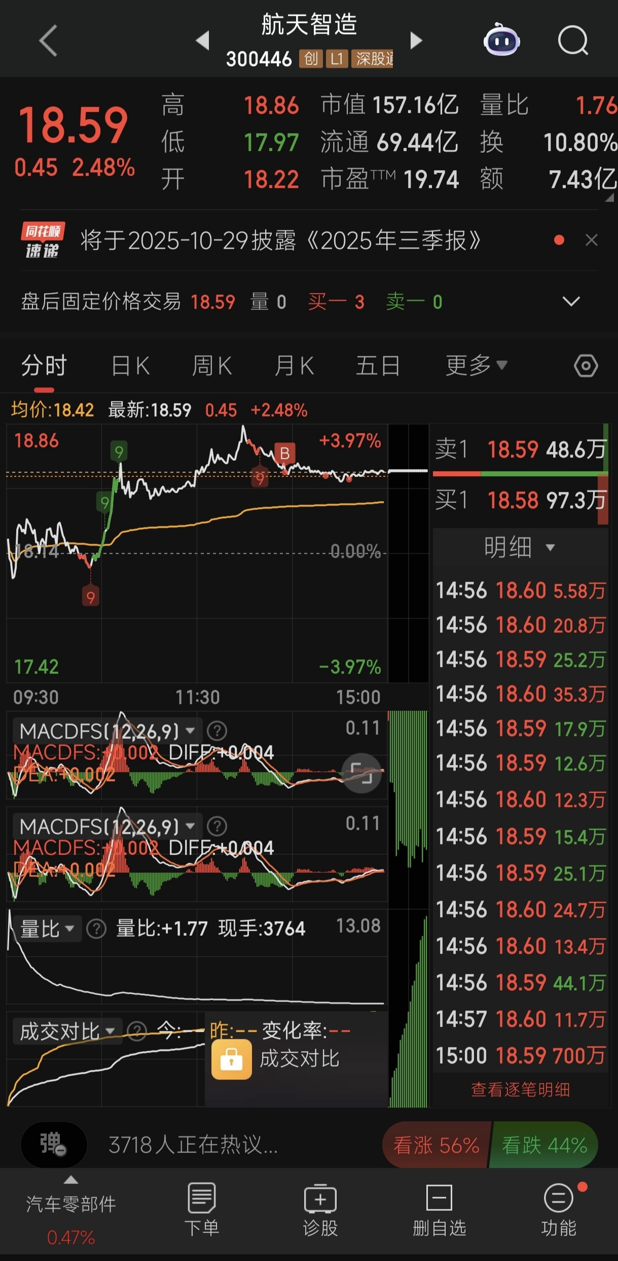 $航天智造(SZ300446)$ 符合我的二级交易模式,先建仓