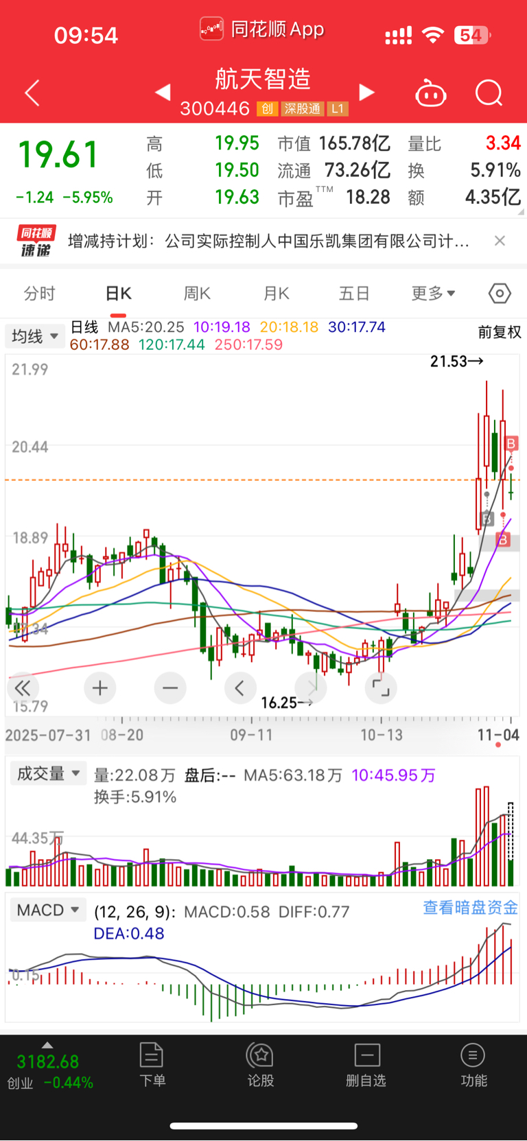 $航天智造(SZ300446)$ 其实很简单的考虑减持这个问题,相对减持的量算大的,但是公司是不是垃圾,股价是不是高,都不是!是不是低开低走,也不是!所以怕什么基本趋势已经起来了,股价要往创新高的方向去!对于减持的意图我个人认为是一些资本运作,反而是利好,短期承压