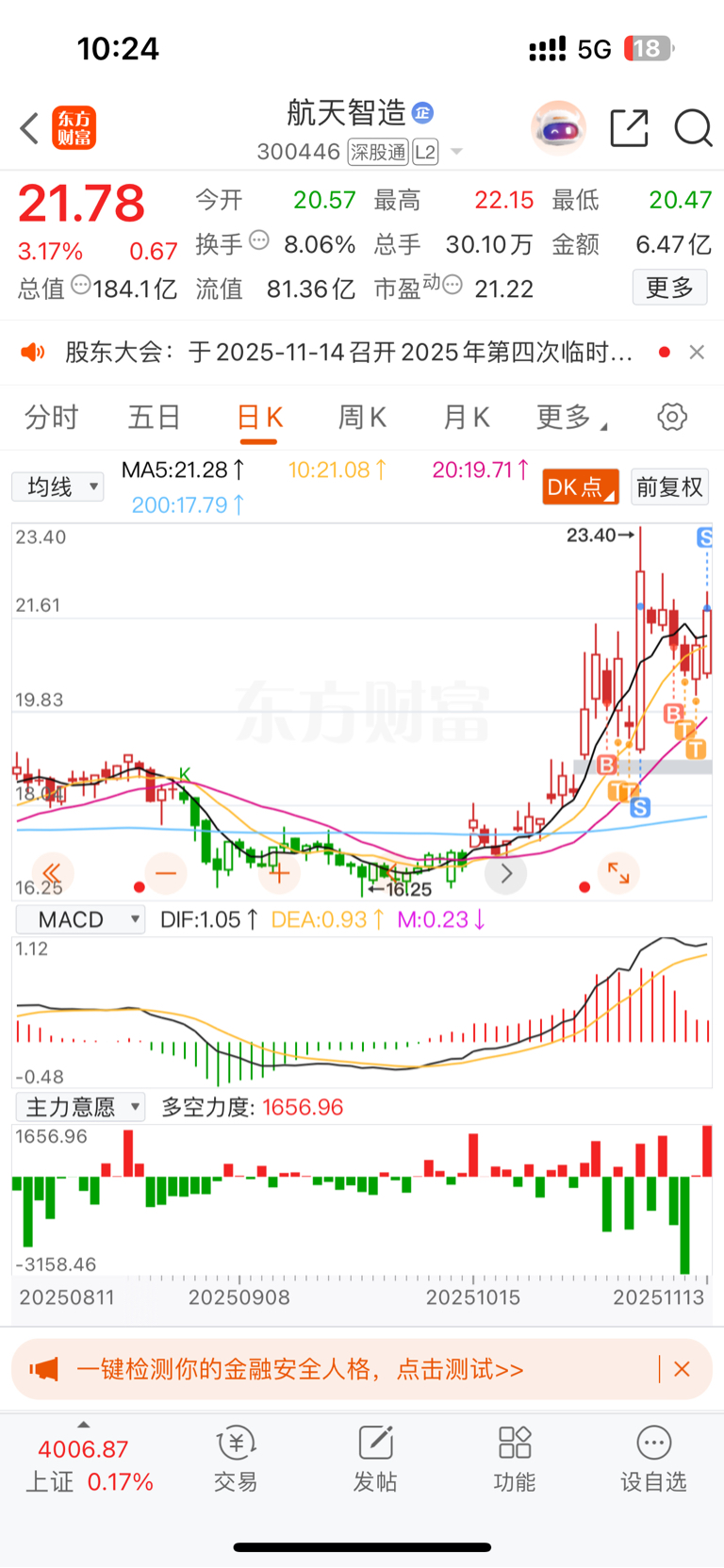 $航天智造(SZ300446)$ 讨论跟不跟风的没有任何意义,小散得陇望蜀要不得,拉长时间来看,不认为智造会比智装差,智造给的持股信心是智装不可比拟的