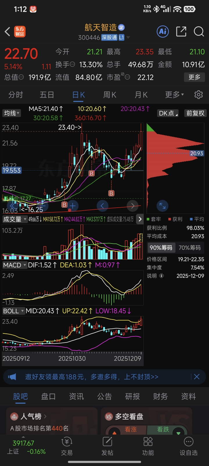 $航天智造(SZ300446)$ 不翻倍不走,还想加仓咋么办?