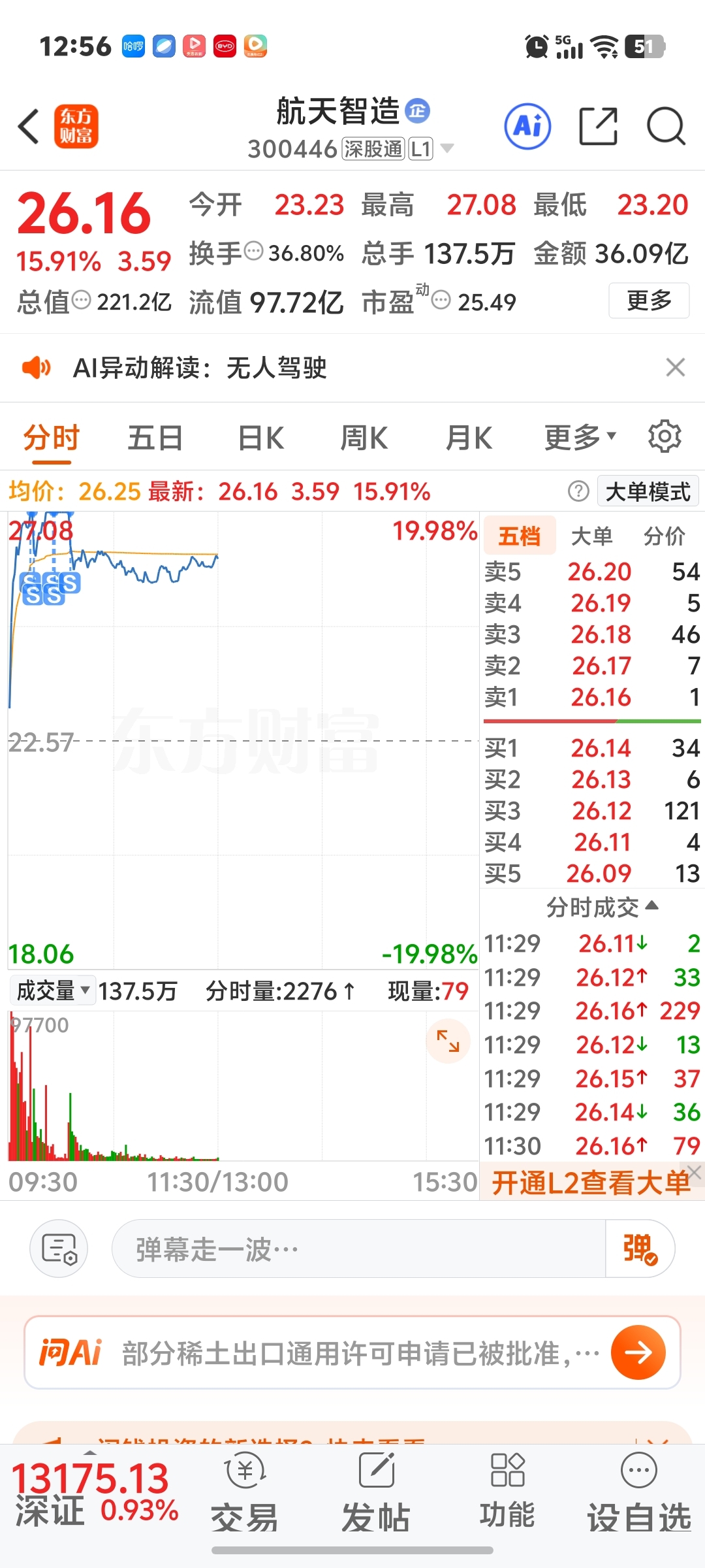 $航天智造(SZ300446)$ 人生第一个20Cm,不贪心