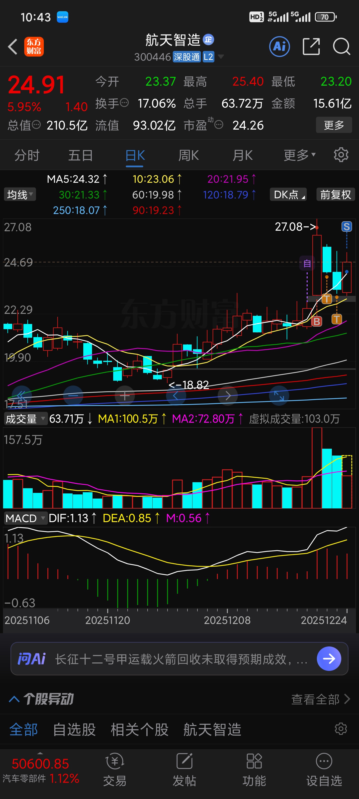 $航天智造(SZ300446)$ 这T做飞了,卖早了
