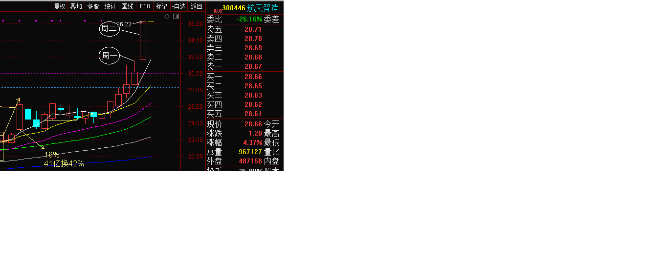 今天在300446上的T操作, 2个分时低位买点, 3个分时高位卖点,总盈利至少增加了5个点以上