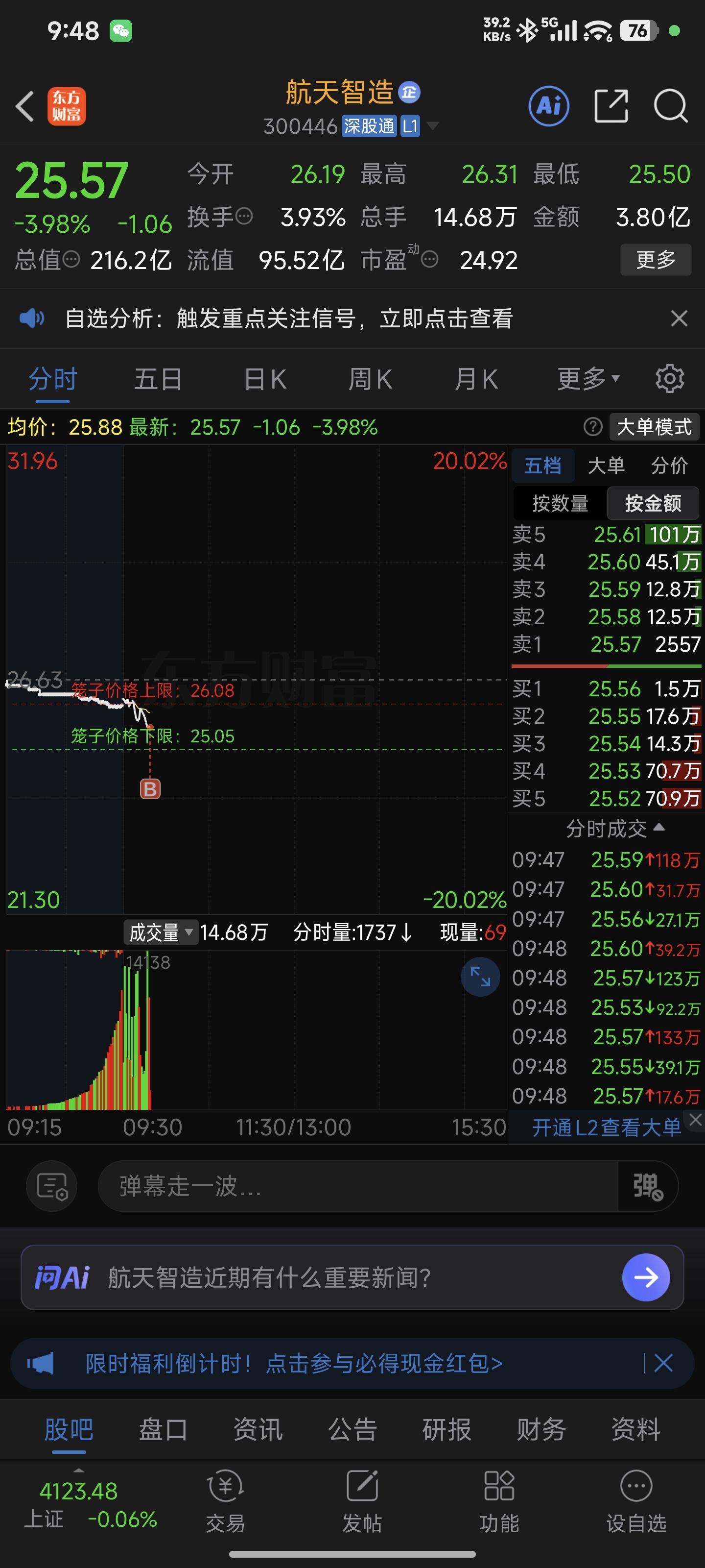$航天智造(SZ300446)$ 既然跌下来,那我就分批加仓了