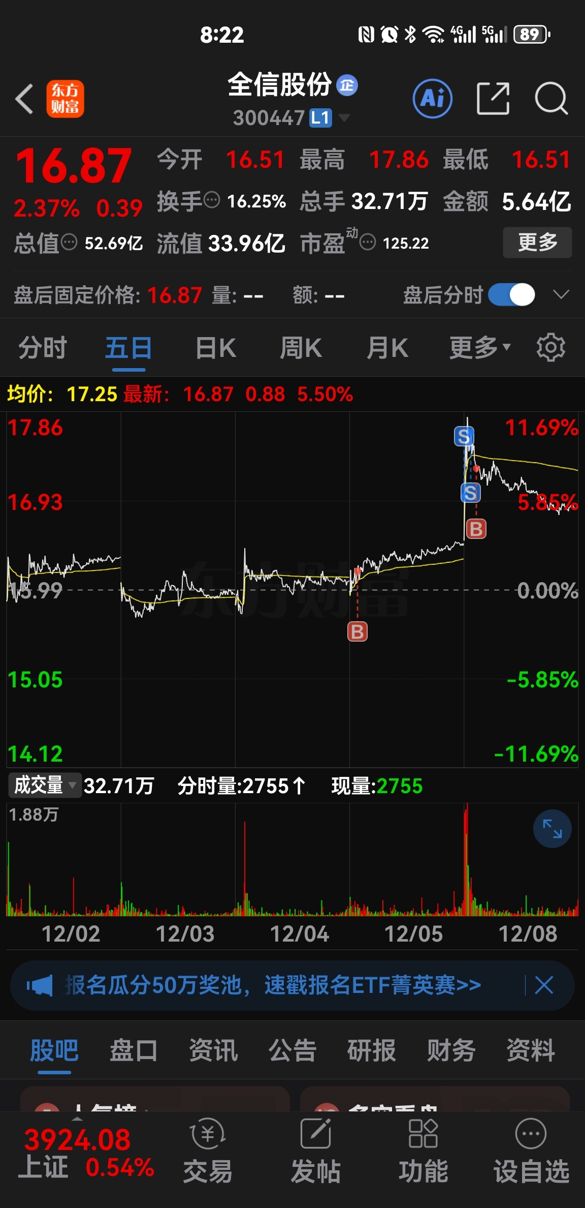 $全信股份(SZ300447)$ 上周五开盘抢入,今天先行一步,减一减。