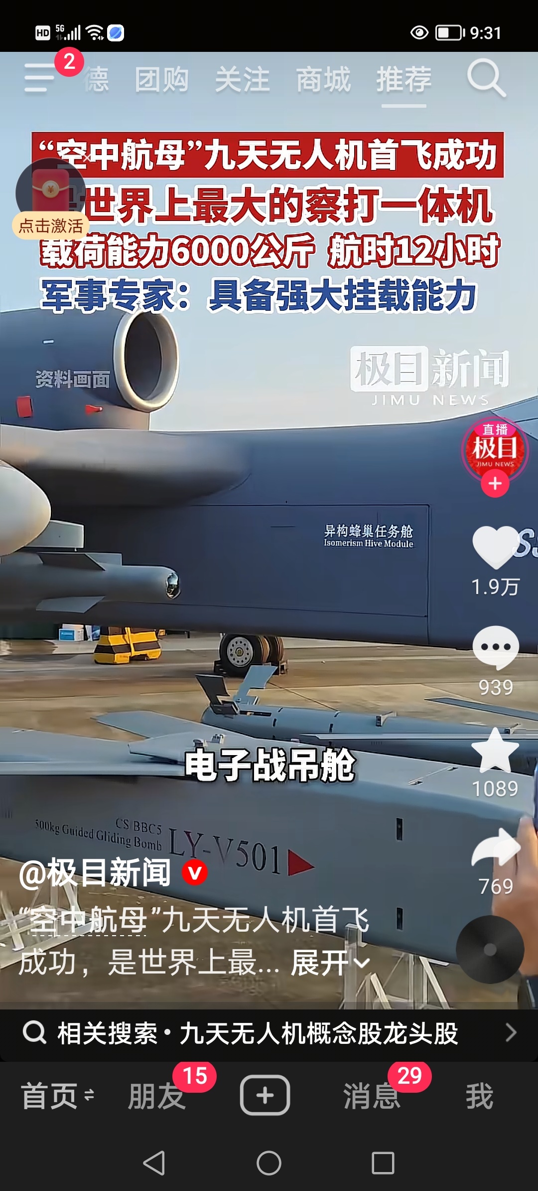 热烈祝贺九天无人机首飞成功。