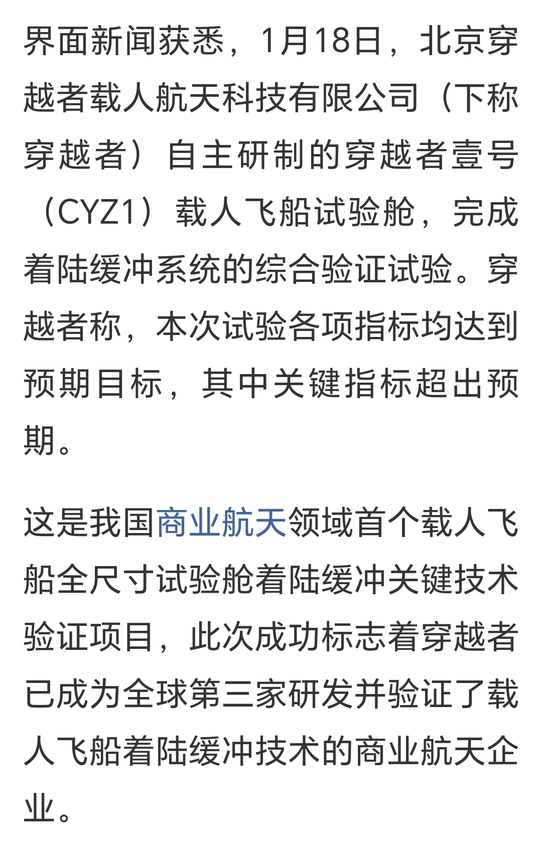 快讯:商业航天头部公司全信股份参与中国商业航天首次!载人飞船着陆缓冲技术获成功验