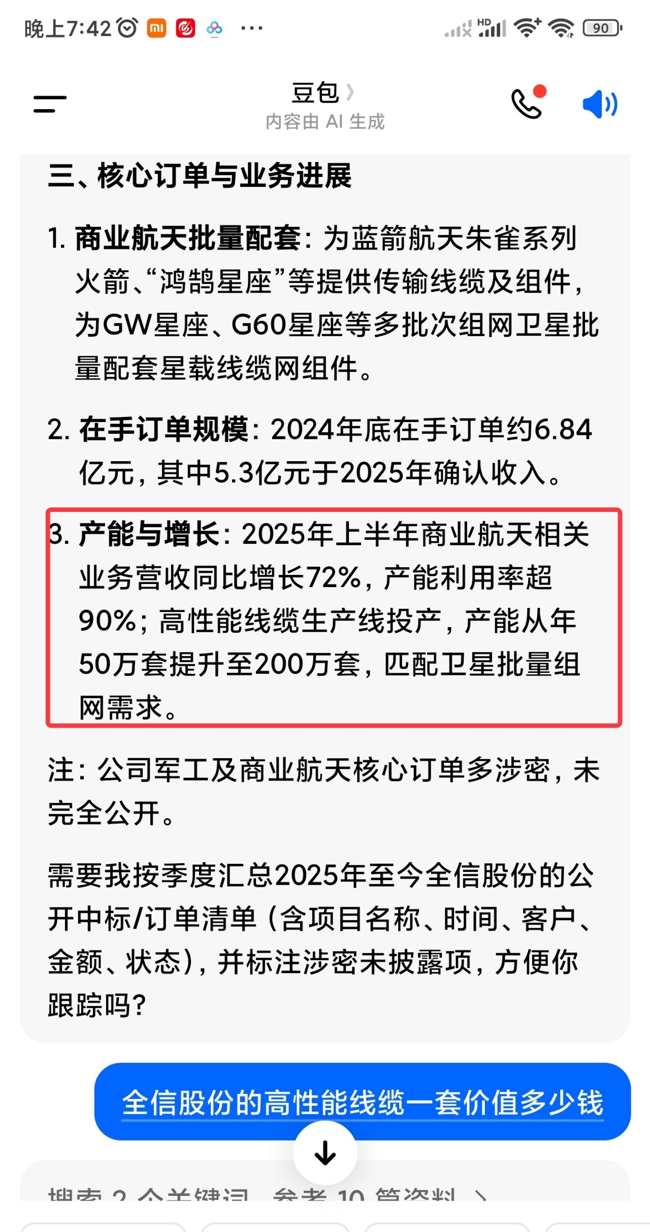 $全信股份(SZ300447)$ 高性能线缆投产,从年产50万套提升到年产200万套
