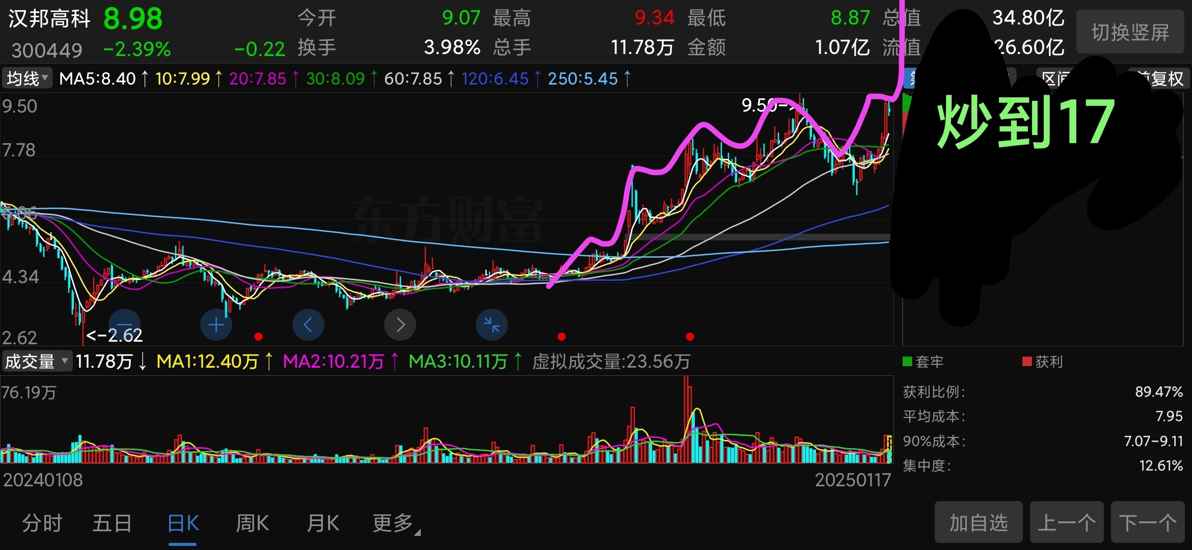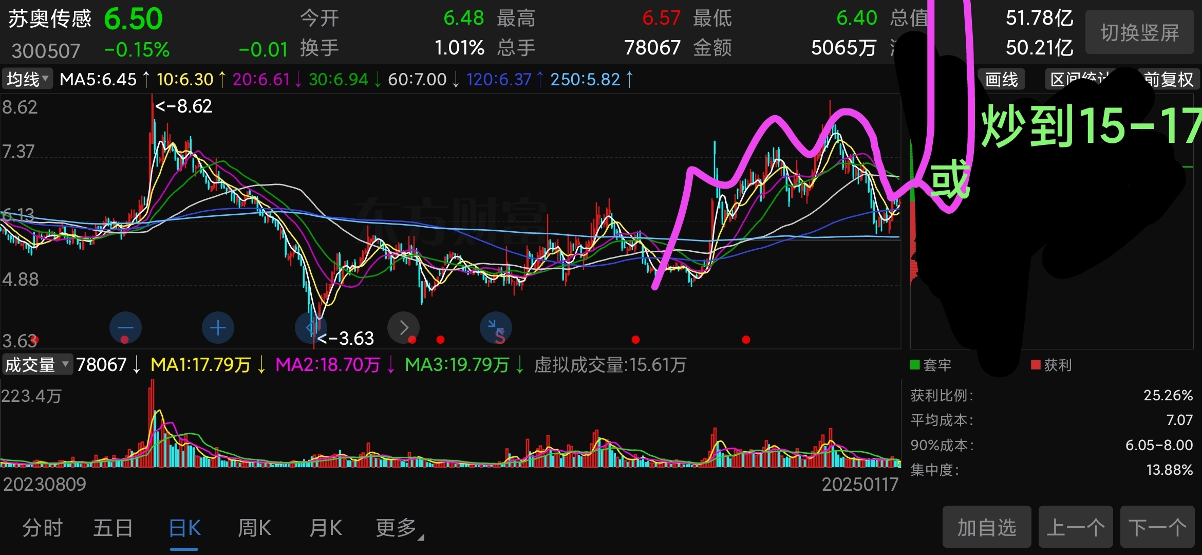 回调就是给你们机会,赶紧上车,汉邦高科最终要炒到17,苏奥传感炒到15-17,挣