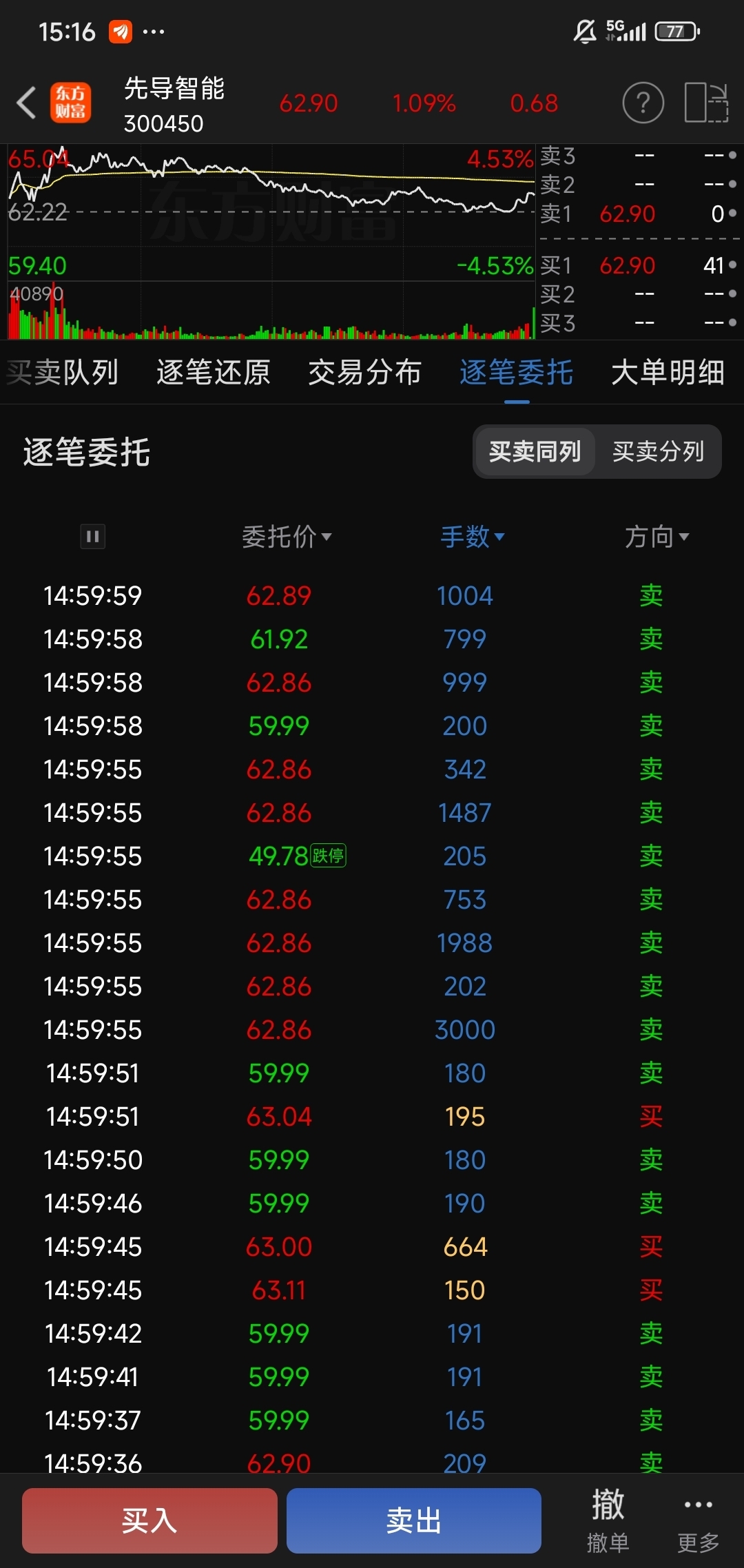 $先导智能(SZ300450)$ 今天收盘前30秒,主力资金奋力抛售,感觉此股势头减弱了。