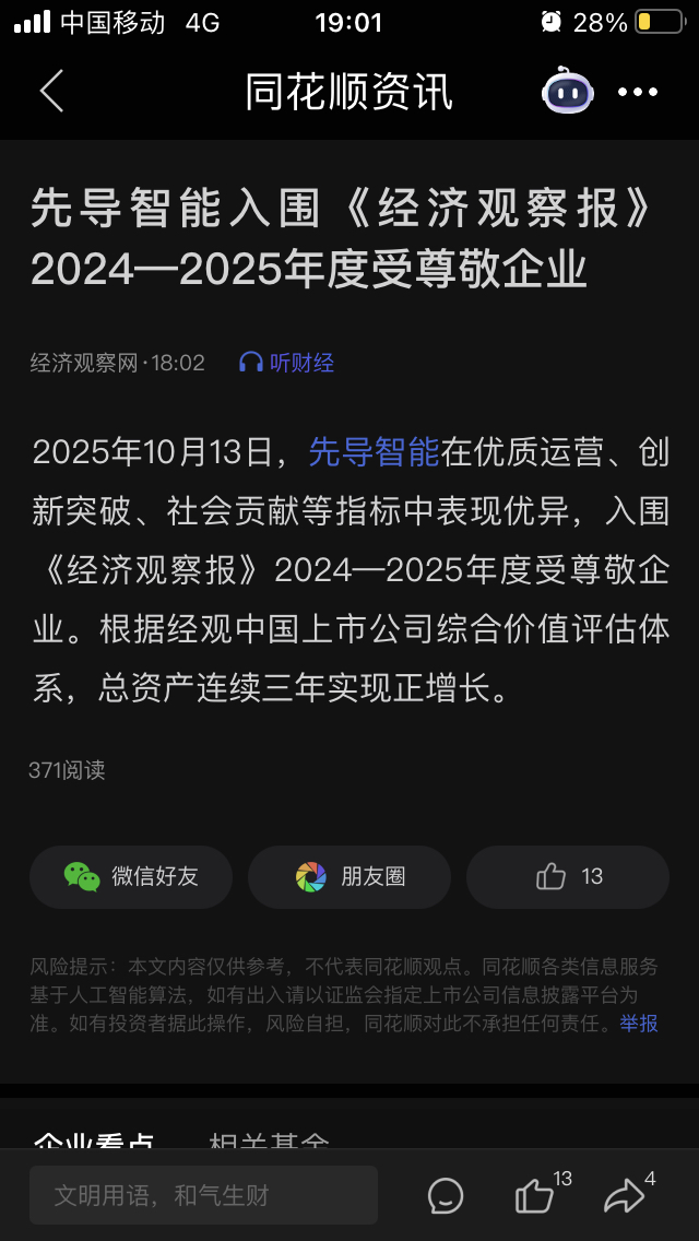 $先导智能(SZ300450)$ 2025年10月13日,先导智能在优质运营、创新突破、社会贡献等指标中表现优异,入围《经济观察报》2024—2025年度受尊敬企业。根据经观中国上市公司综合价值评估体系,总资产连续三年实现正增长。