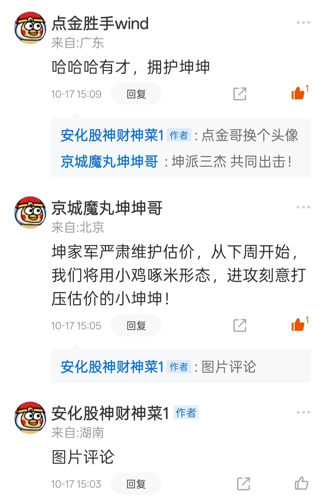 尊敬的各位支持坤家军的兄弟姐妹们,经过一天的酝酿,坤派三杰在头像上统一选择了财神坤,这意味着我们三人统一认为下周看涨!