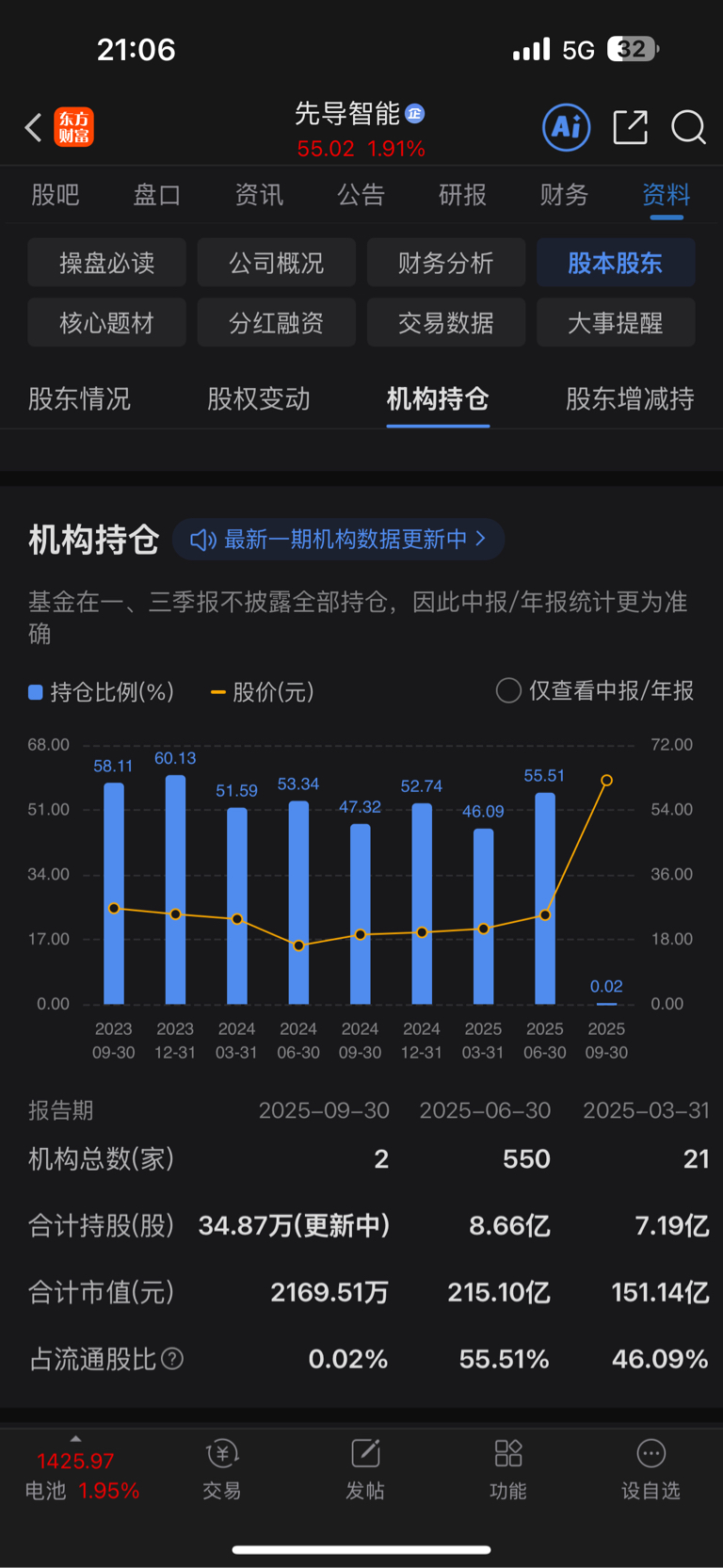 从机构持仓看,2025年9月30日,只剩2家机构,请大家猜猜看,先导现在的主力都