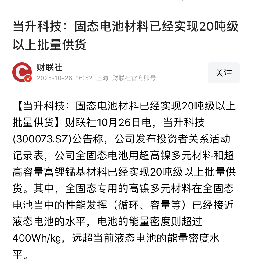 已供货固态电池材料超过20吨,说明已有公司开始量产!