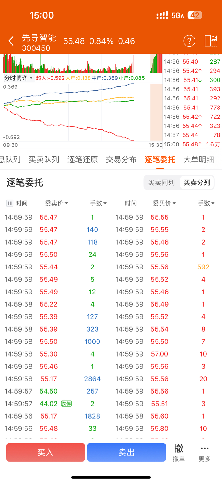 $先导智能(SZ300450)$ 出货快4亿。左边的卖单竞价还在使劲大单砸,呀s啦类