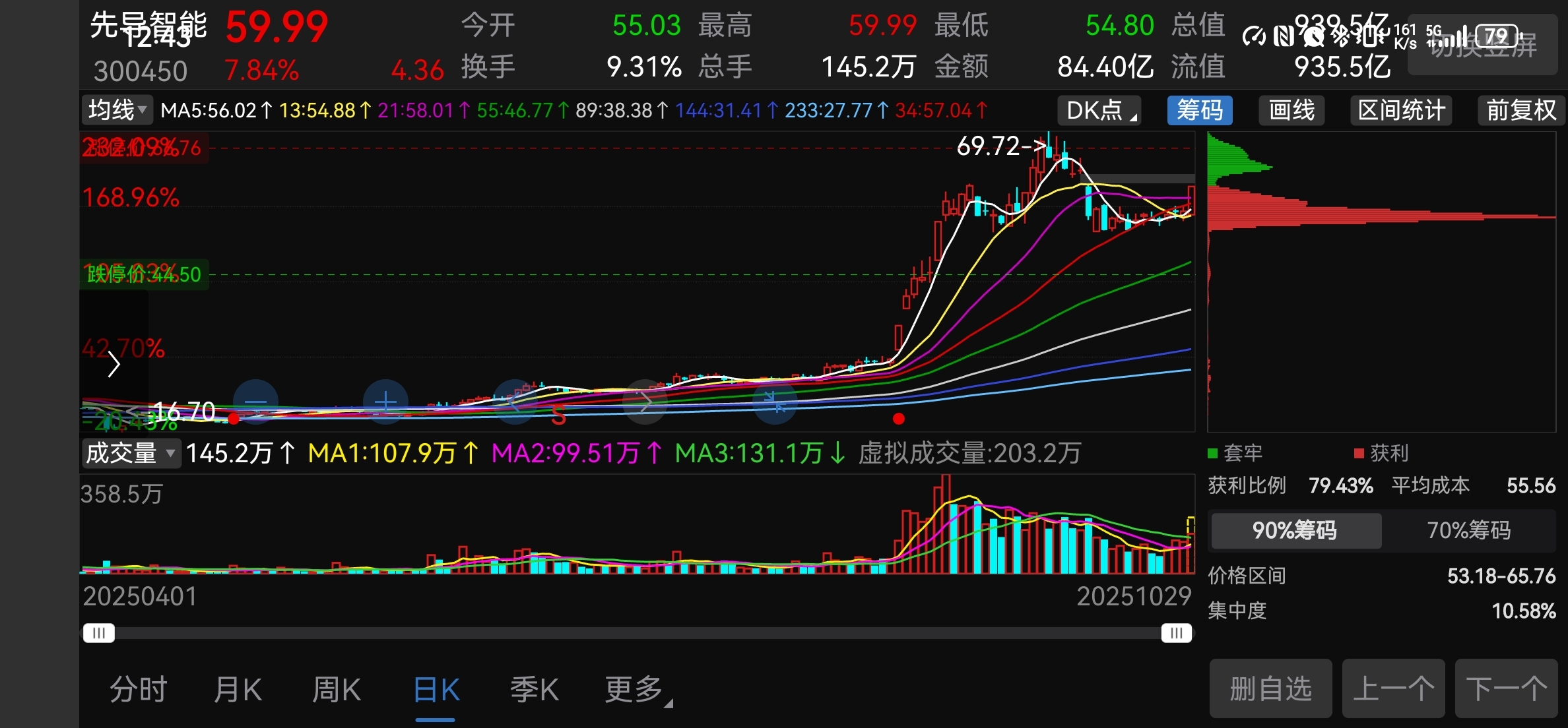 $先导智能(SZ300450)$ 上方套牢盘几乎没有了,所以再次形成上涨趋势概率相当大!