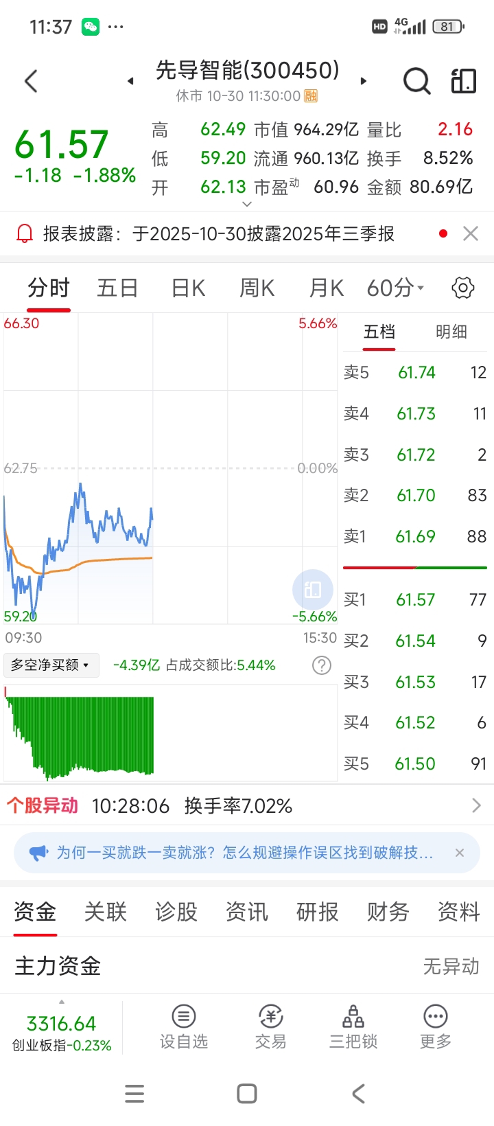 $先导智能(SZ300450)$ 主力资金流出