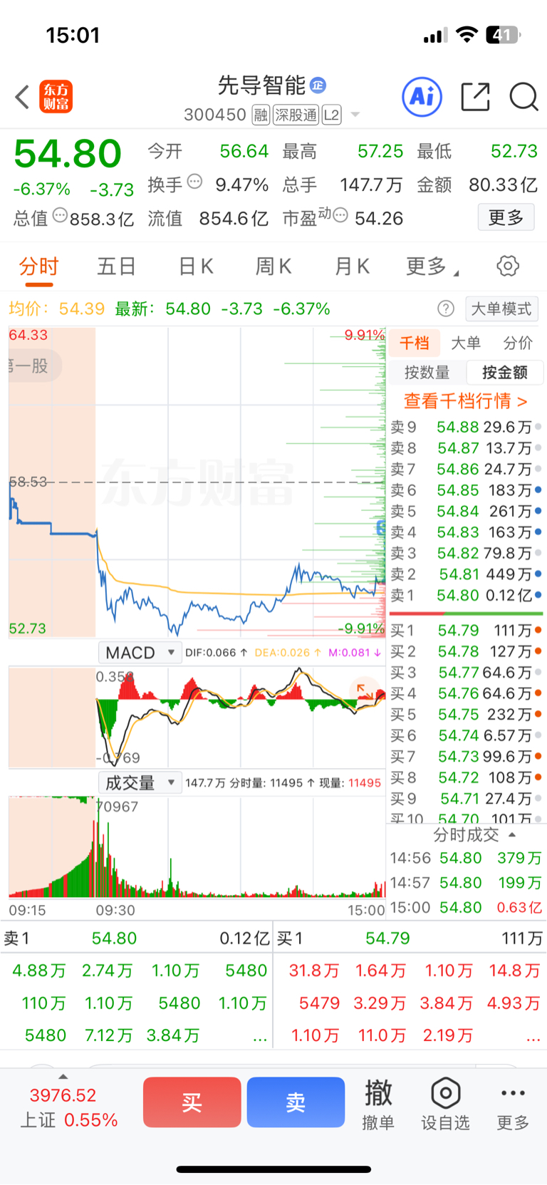 $先导智能(SZ300450)$ 竞价走了,顶不住了