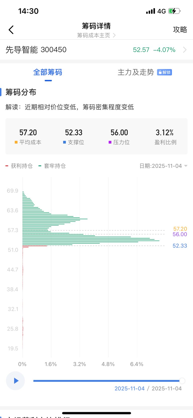 $先导智能(SZ300450)$ 看这个筹码分布,你就说怕不怕吧,高位发套?