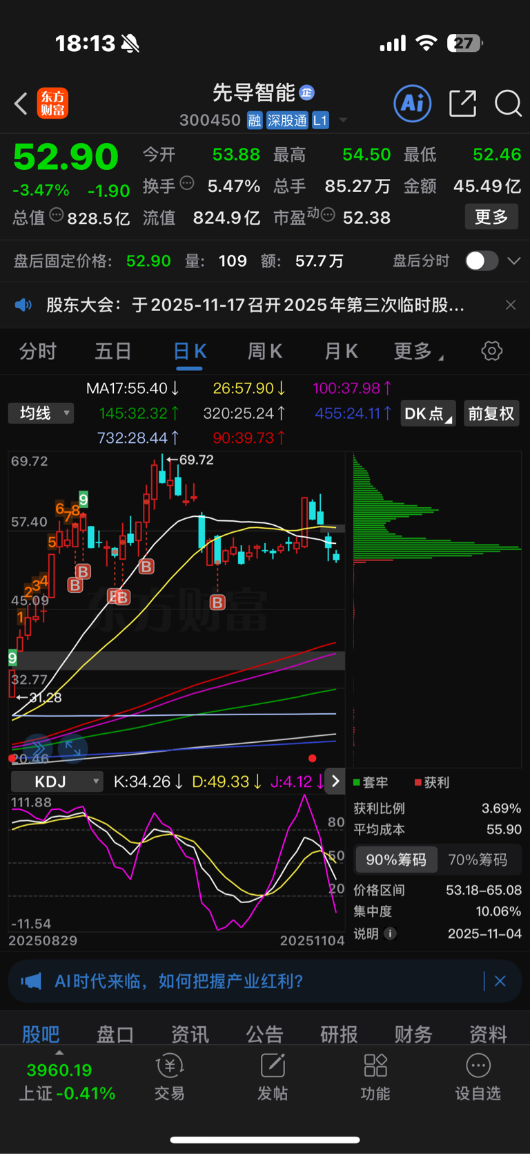 $先导智能(SZ300450)$ 请高手告诉我现在是大家都亏的,那往走下面怎么砸盘呢?还有弹药吗?亏着砸盘按说破位股票都有重大利空消息,好赖先导智能业绩还不错订单排的头晕,现在97%被套,人品先不说,主力有能力再砸盘吗?万一把自己砸出去散民涌进来怎么办?我怎么主力继续走下也很头疼啊!看看筹码峰有点宽慰自己:大家都亏着那就挺住!