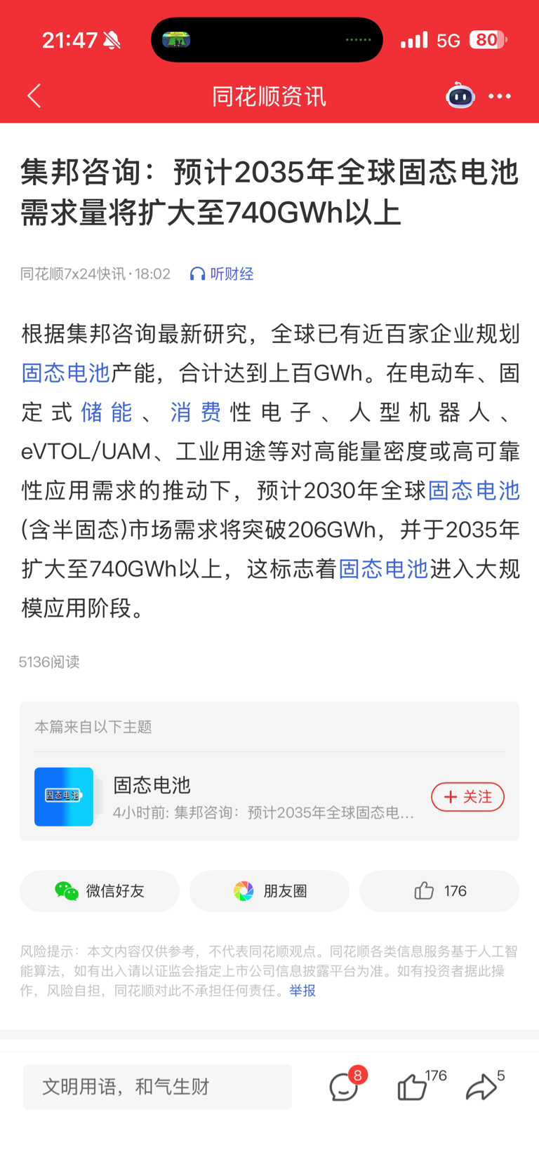 $先导智能(SZ300450)$ 根据集邦咨询最新研究,全球已有近百家企业规划固态电池产能,合计达到上百GWh。在电动车、固定式储能、消费性电子、人型机器人、eVTOL/UAM、工业用途等对高能量密度或高可靠性应用需求的推动下,预计2030年全球固态电池(含半固态)市场需求将突破206GWh,并于2035年扩大至740GWh以上,这标志着固态电池进入大规模应用阶段。