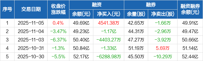 先导智能:融资净买入4541.38万元,融资余额49.69亿元(11-05)